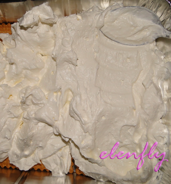 την στρώνουμε προσεχτικά επάνω στα μπισκότα